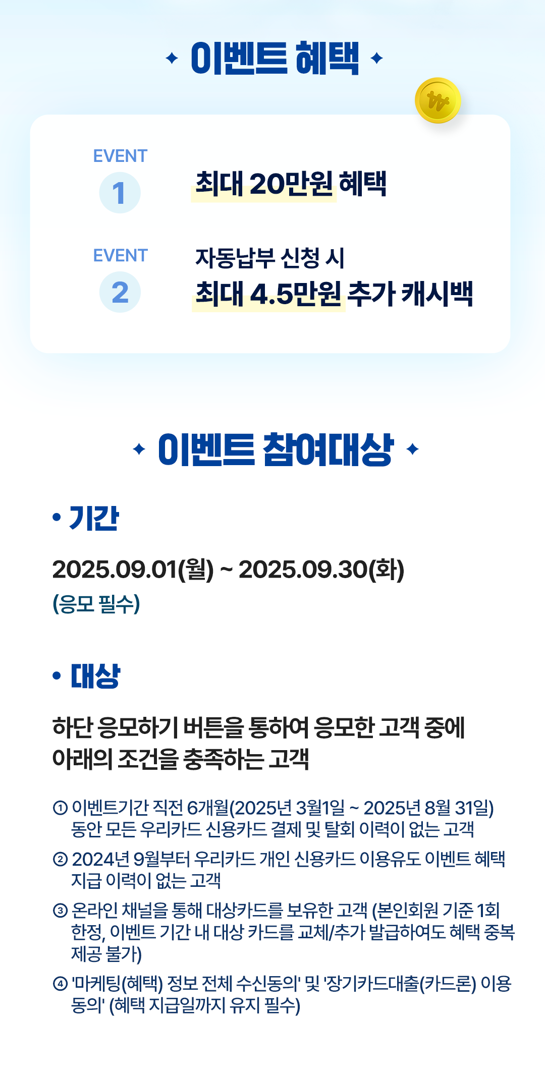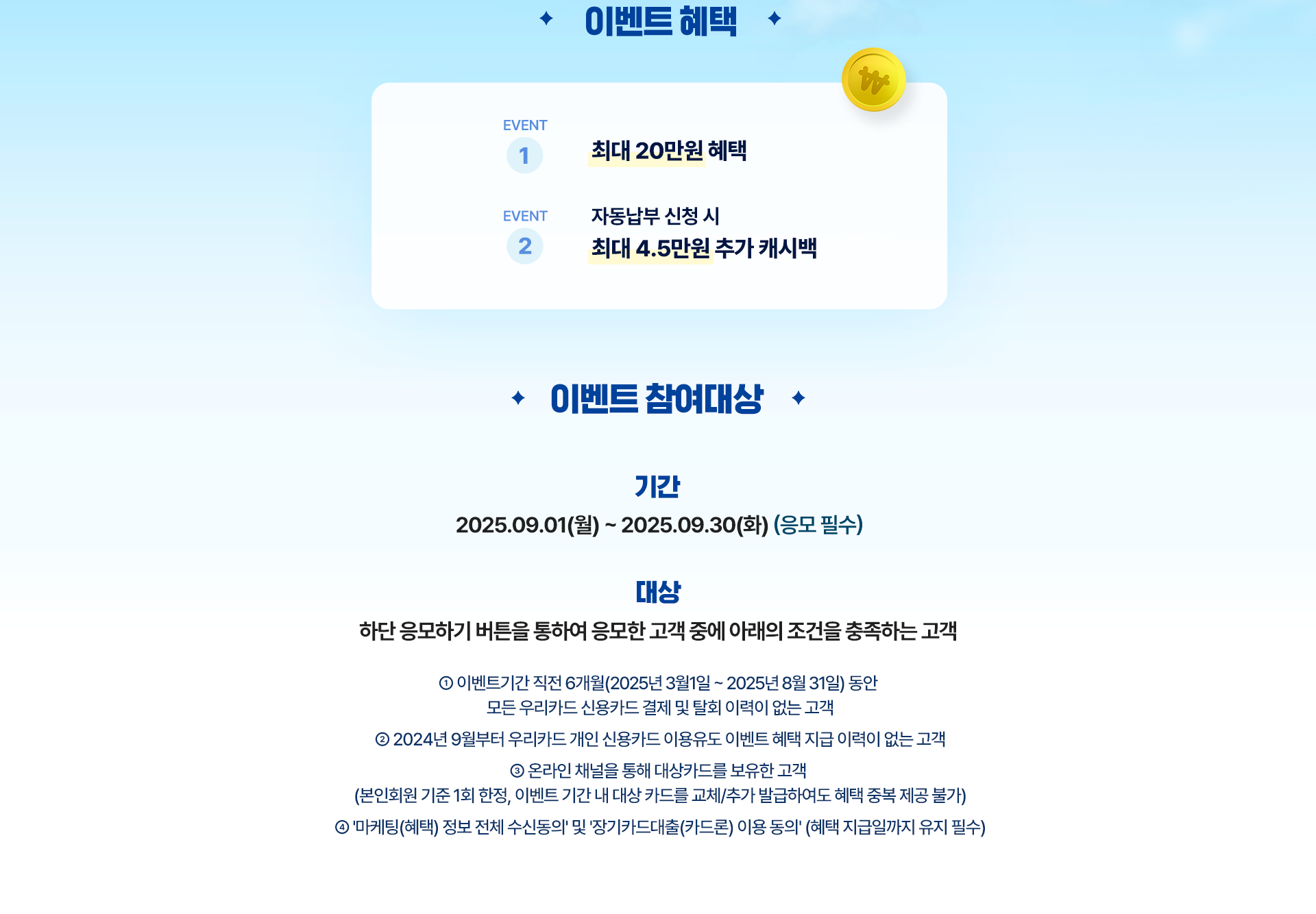 구름 이미지 동전 이미지 5월 한정이벤트 텍스트 이미지 최대 215만원 캐시백 텍스트 이미지